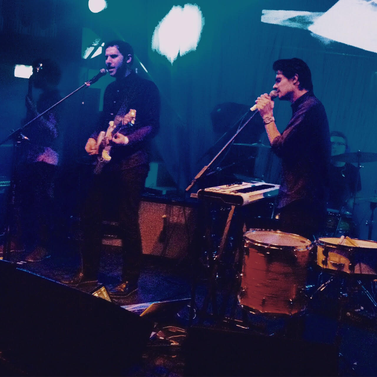 It was then time for another of Popped Music’s favourites, Veyu. Occupying a musical space on the balancing line in the transition from Joy Division, they thrived in the party atmosphere with singer describing it from the stage as awesome and fun. The crowds would definitely have suited a more upbeat and less challenging sound, but that did not put a dampener on anything.