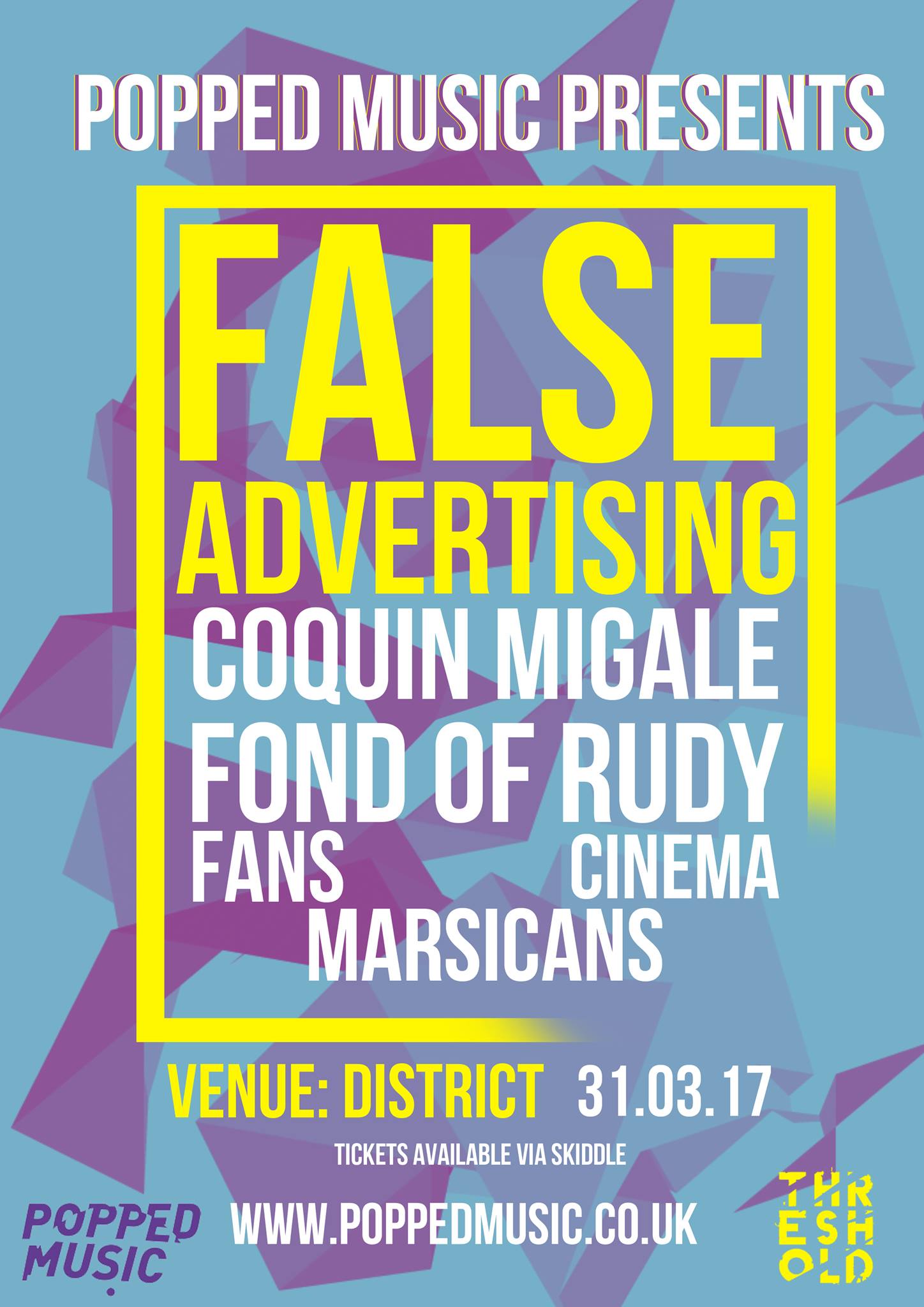 Tickets for Threshold are on sale now! The Popped Music Stage is at District on 31st March.