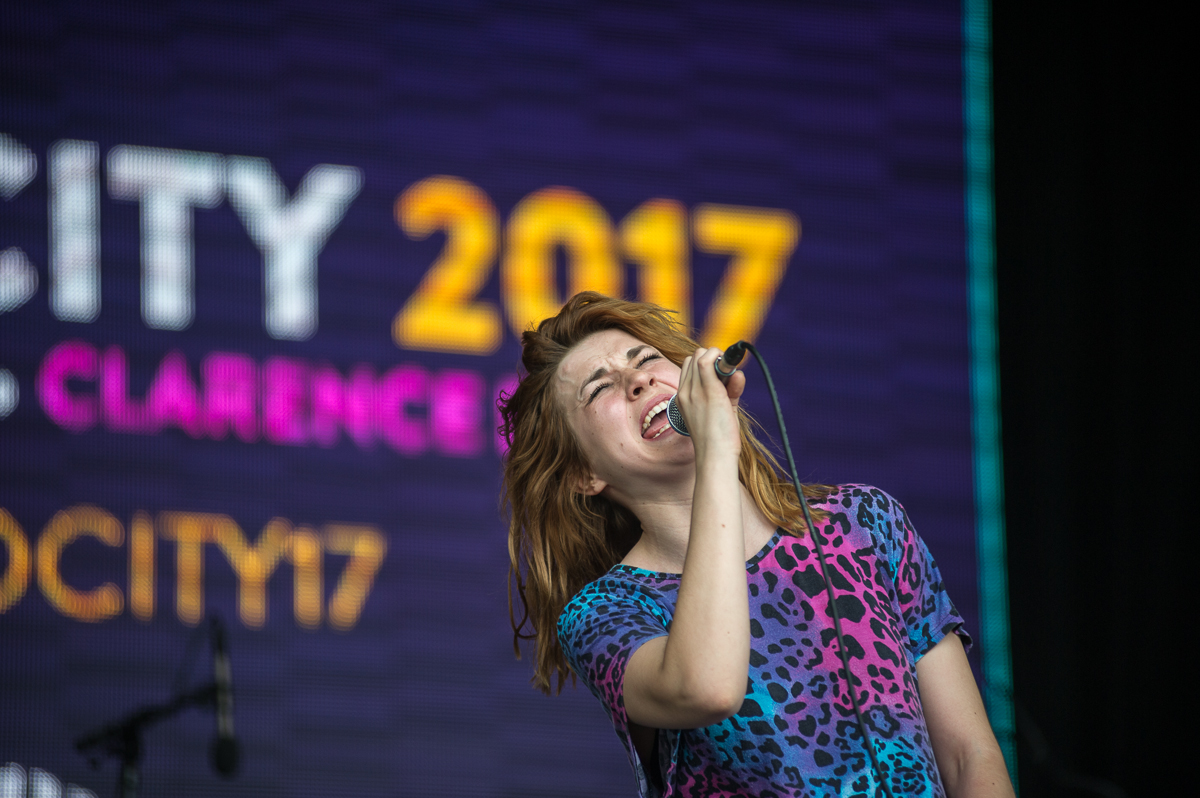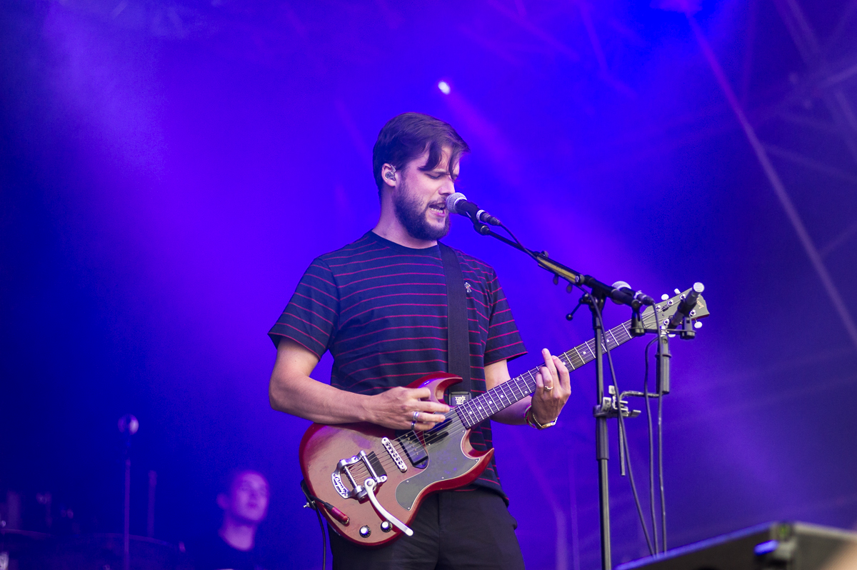 Despite threats of horrific thunderstorms and rain that would get Noah doing some carpentry, the site was bathed in sunshine from much of the early part of the day. Unfortunately the banks of the royal blue Mersey have a constant heavy breeze to minor gale 365 days per year. This meant that the industrial site became reminiscent of a small town in the Sahara desert as wave after wave of sand and dust hit the audience and bands. Fickle Friends were unlucky to perform in probably the worst of it which had Nattie complaining that “it’s been a bad day to wear white jeans” and after she took over keyboard duties during Say No More, “that keyboard felt like it was made of dust”. Hats off to the band though as these were only minor distractions and final track, Swim, felt victorious that they had succeeded.