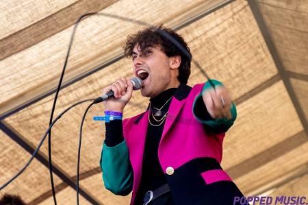 Over on the Outdoor Stage Kier was next to give the festival a bit of a shake and a wake up with his very flamboyant outfit and set. One of us wasn’t expecting him to look like that from his recorded songs and the other wasn’t expecting him to sound like that based on how he performed. Go figure! Kier has a vocal that is as attention grabbing as his loud outfit – it’s deliciously rich and effortlessly moves across notes and key changes and is strong and full of personality. He was followed by our good friends Marsicans who upped the tempo somewhat with their massive sounding set. A band that has some of the best indie pop tunes I’ve heard in an absolute age – they’re engaging to watch- their hair flipping, body-bouncing, guitar-holding-a-high antics and recent single Friends should be in every indie-loving music fan’s collection.