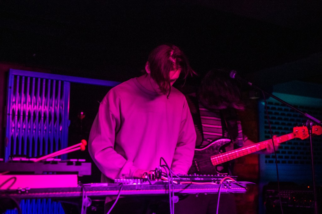 It’s a difficult job for a band with so many synthesisers on stage to create a connection with the audience in a small venue. All too many times, the synths are lined up side-by-side and create a wall between the performers and the audience which leaves each side feeling a little flat. Adult DVD combatted this by turning singer Harry’s desk side on, opening him (and therefore the band) to the audience. He didn’t need to go wild in the tight confines, the music did that for them.